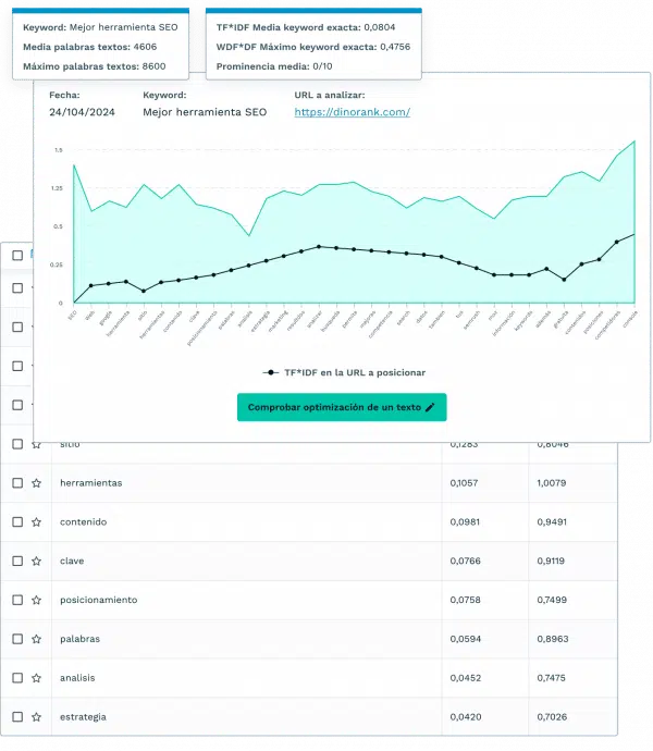 Permite realizar auditorías técnicas, seguir la evolución de tus palabras clave, optimizar el enlazado interno, detectar contenido duplicado o canibalizado y mejorar la semántica de tus textos con funciones como WDF*DF. Todo desde una sola plataforma, sin necesidad de usar múltiples herramientas.