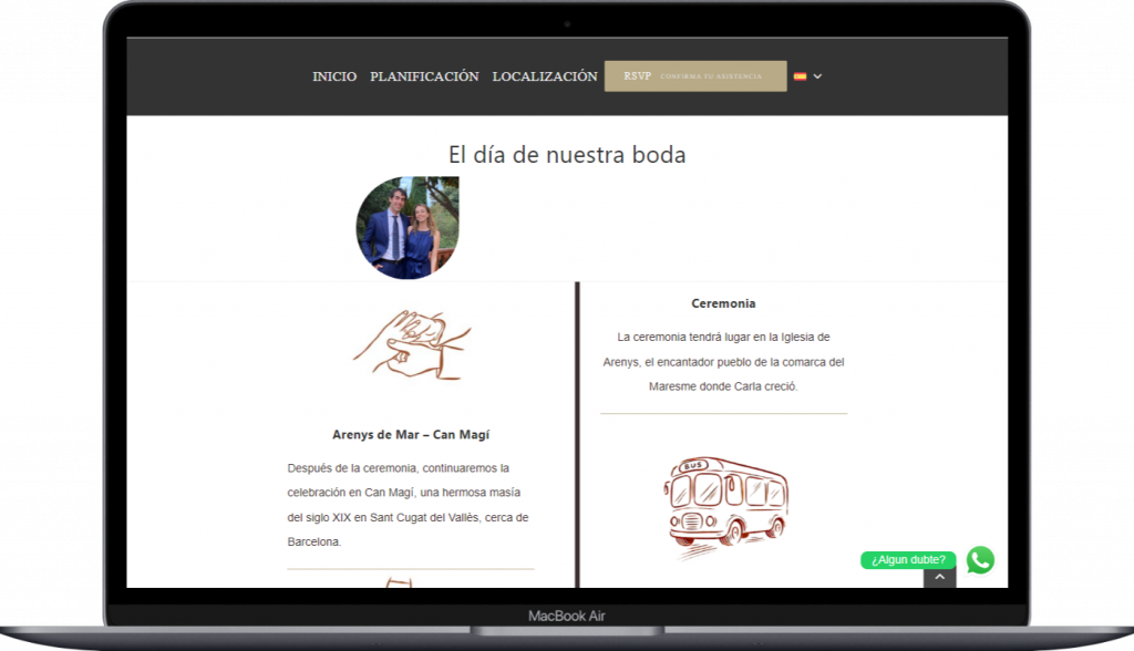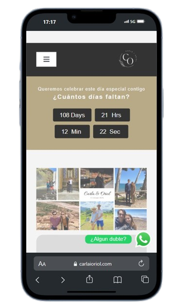 Este proyecto nace de una historia personal: Carla y Oriol están empezando una nueva etapa de vida juntos, y querían compartir la noticia con sus seres queridos de una forma especial. Me ofrecí a crearles una web totalmente personalizada como regalo.